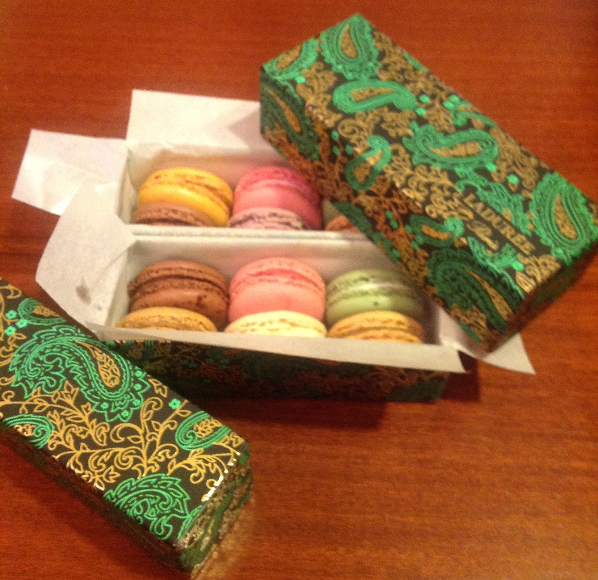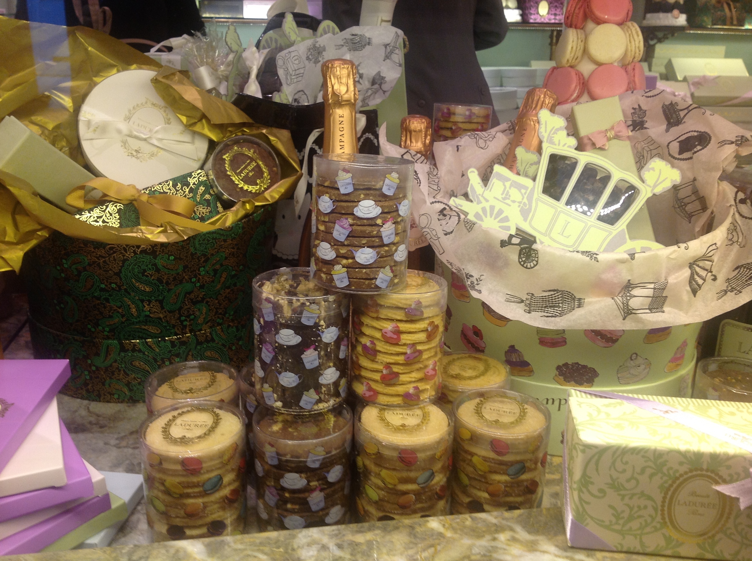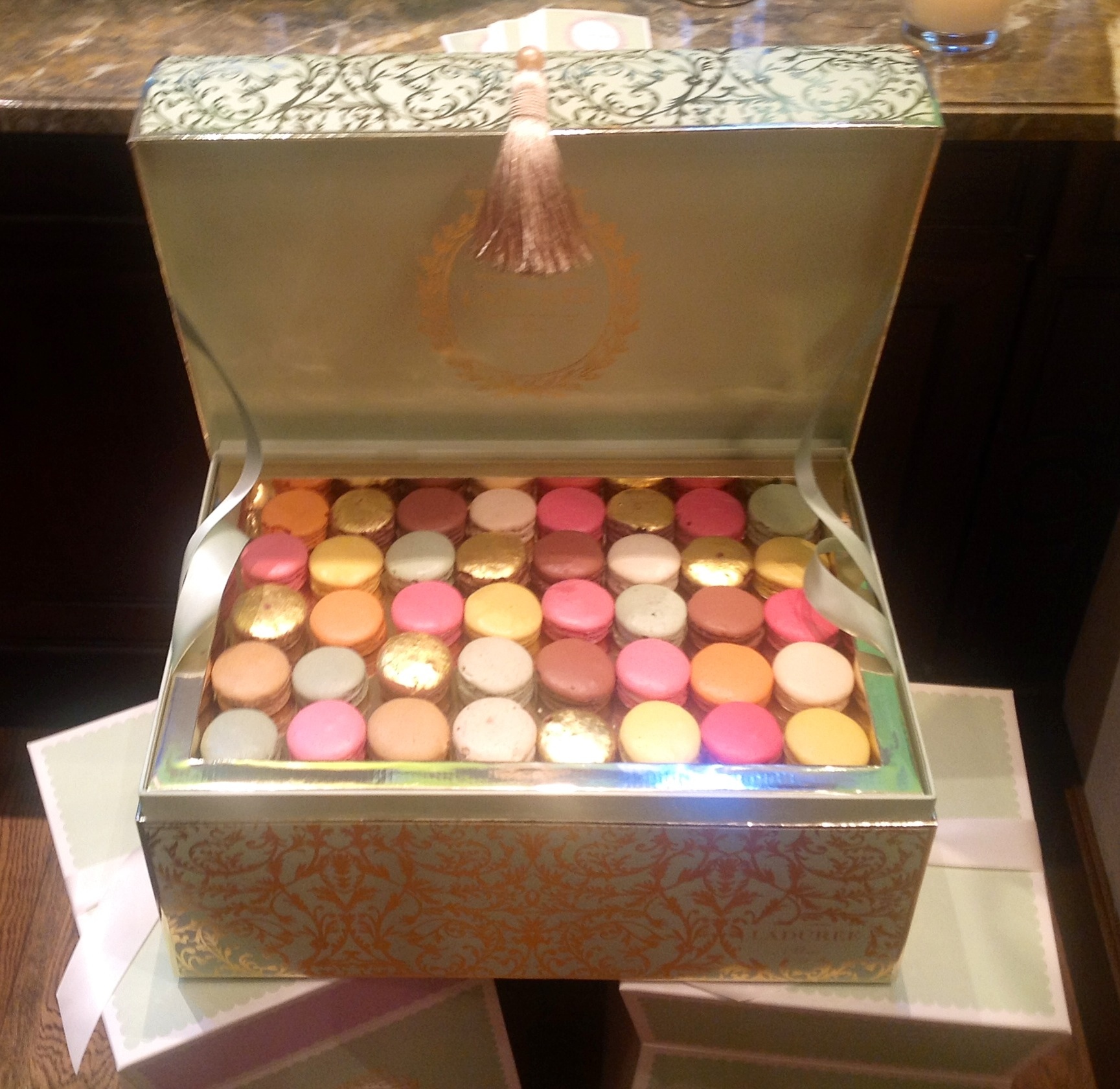Buonissimi macaron (nella nuovissima scatola dal motivo cachemire), cioccolatini, caramelle ma anche tè, spumante, marmellate.