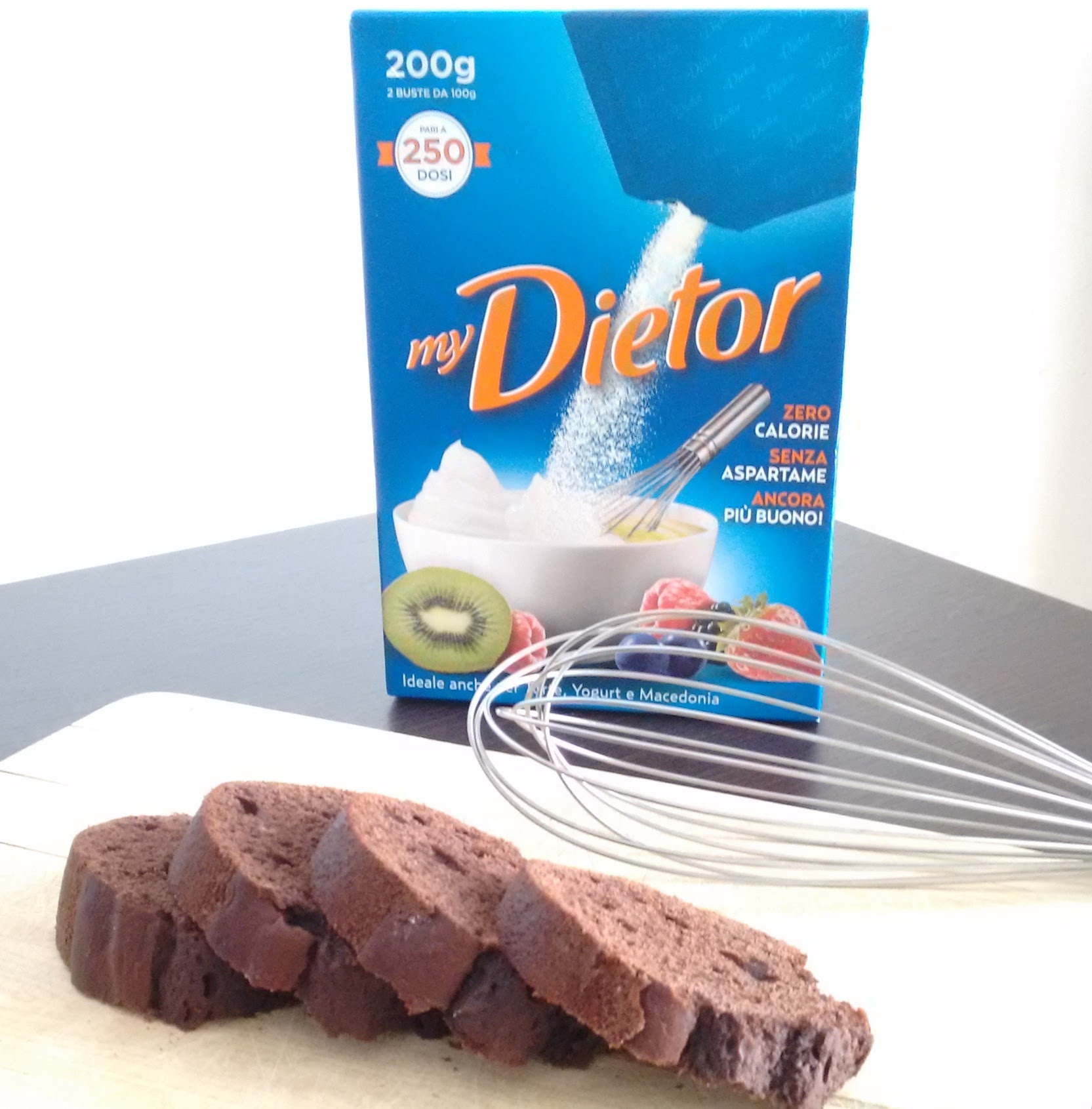 Nessun trucco, prepareremo i dolci sostituendo lo zucchero con il dolcificante. In particolare, io ho iniziato a usare nelle mie ricette My Dietor Blu Sfuso (un formato che ho ricevuto in anteprima e che sarà disponibile sugli scaffali del supermercato a partire da Settembre 2016) o My Dietor Cuor di Stevia, una versione naturale del dolcificante Dietor. Ovviamente il dosaggio è diverso da quello dello zucchero, perché basta un ridotto quantitativo di dolcificante per avere la stessa dolcezza che si ha con lo zucchero. Per questo è importante apportare alcune modifiche alle ricette e ricordare due semplici regolette: