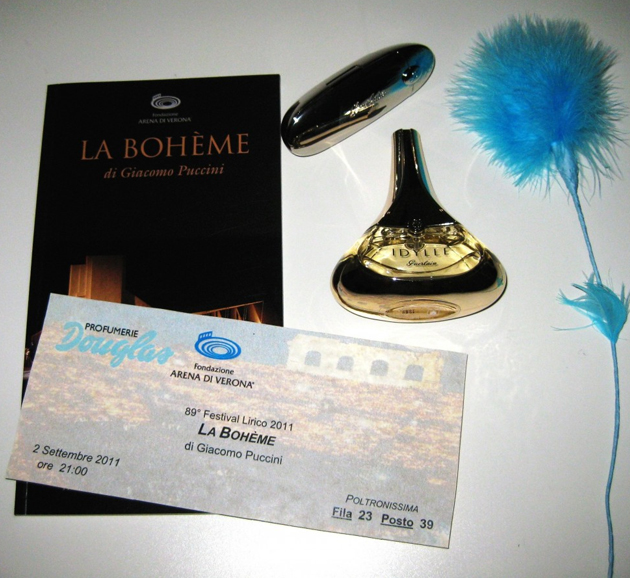 Come se la possibilità di vivere un’esperienza fenomenale non bastasse, le profumerie Douglas e Guerlain hanno pensato bene di omaggiare con un regalo molto speciale la mia partecipazione all’evento del 2 settembre scorso all’Arena di Verona.