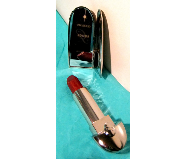 - Rouge G, un rossetto color “Zenzero” (n.43, si tratta di un rosso mattone chiaro e leggero sulle labbra) dal packaging fantastico: innovativo e prezioso. E’ in oro bianco, è stato disegnato dal gioelliere di Place Vendôme (Parigi) Lorenz Baumer, si presenta con un design orizzontale e tondeggiante, che richiama un certo senso di femminilità, e custodisce uno specchio segreto che si richiude magneticamente. Io lo uso da qualche giorno e devo dire che trovo molto pratico, ma sopratutto gratificante, avere un “gioiello” sempre con me.