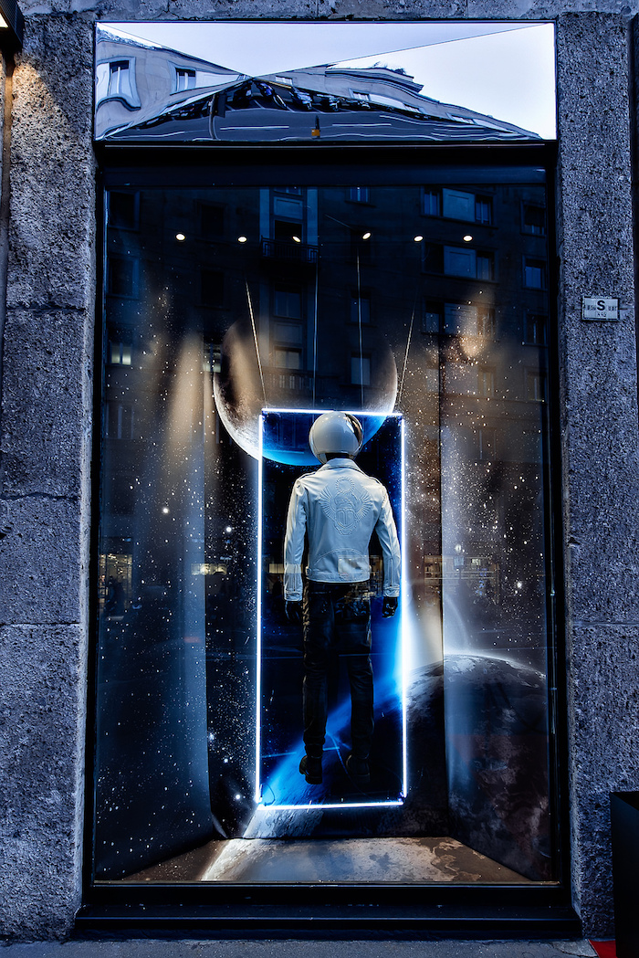 Le illuminazioni sono progettate per valorizzare i capi attraverso una particolare tecnologia a led che ricrea l’illusione di una passerella grazie all’utilizzo di stretti coni ottici, esaltando così l’effetto “on stage” dell’allestimento.