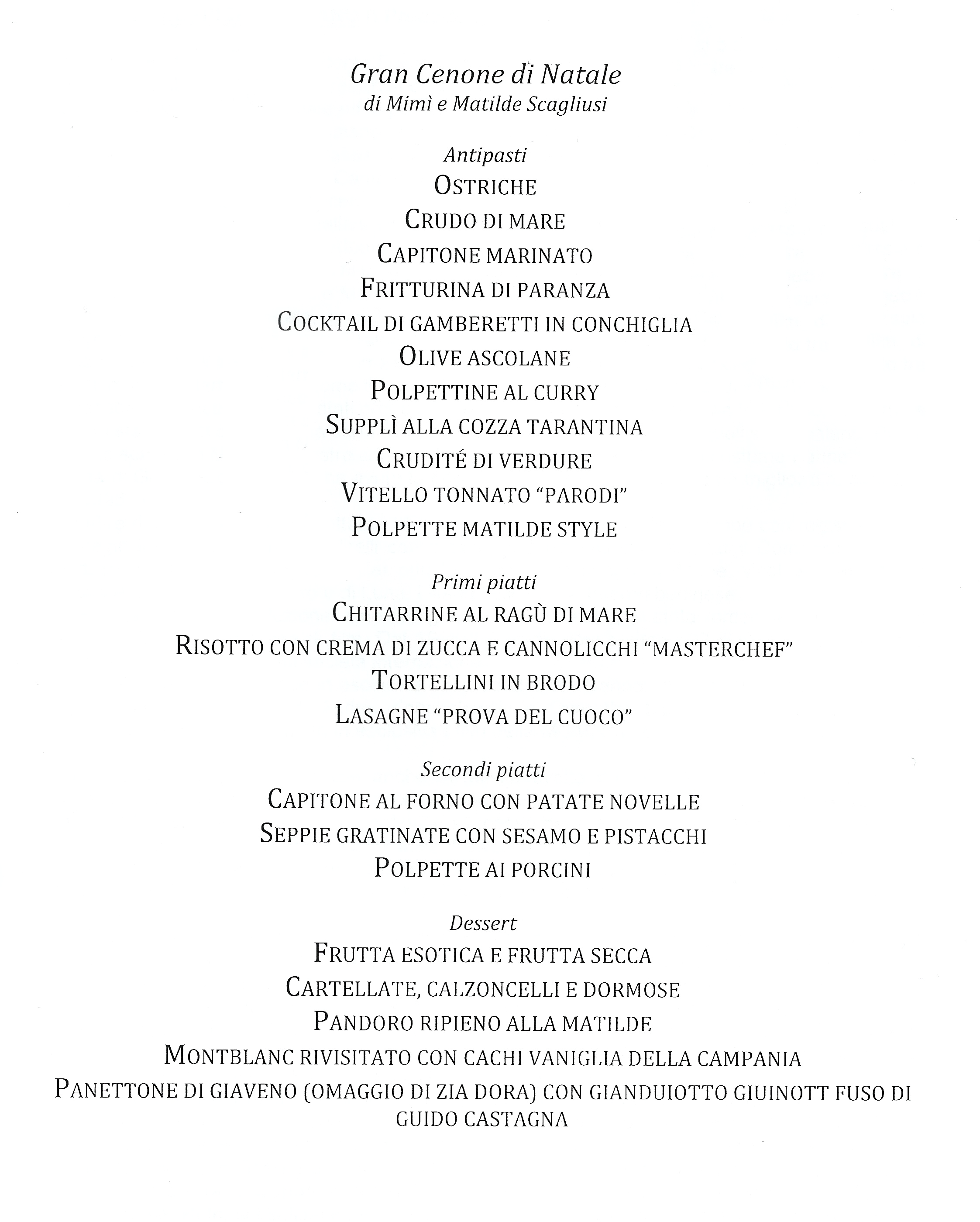 Vi lascio alla visione del trailer (in alto) e al menù della cena (qui sotto), non si sa mai che vogliate prendere spunto. 😉