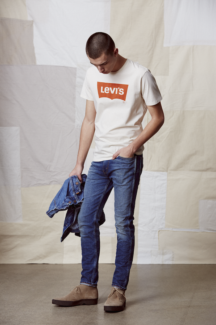La collezione uomo include un 510™ Skinny e il nuovo 505™C e una tuta di ispirazione vintage. Completano perfettamente la collezione, t-shirts con grafiche iconiche, iconografie retrò anni Settanta e il batwing Levi’s® arancio. La classica Trucker Jacket è qui riproposta in versione vintage wash e in cotone bianco ottico.
