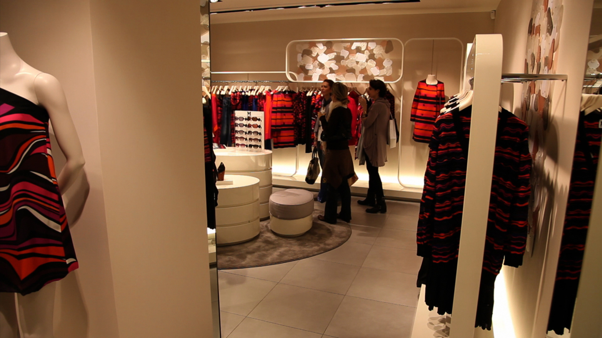 Progettato da Grassicorrea Architects, ricorda l’atmosfera degli anni ’70. Colori pastello e forme smussate rendono l’ambiente semplice, accogliente ma sempre elegante e ben si sposano con gli abiti variopinti di M Missoni che risaltano in tutto il loro splendore.
