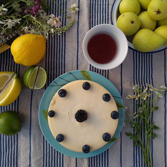 1. Scegliere alcuni ingredienti di stagione da affiancare al dolce, lasciandosi ispirare dalla tipologia o dai colori del dolce stesso. E senza dimenticare che quando allestiamo la tavola tutti gli elementi devono essere in armonia tra di loro, per creare movimento all’interno del nostro scatto.
