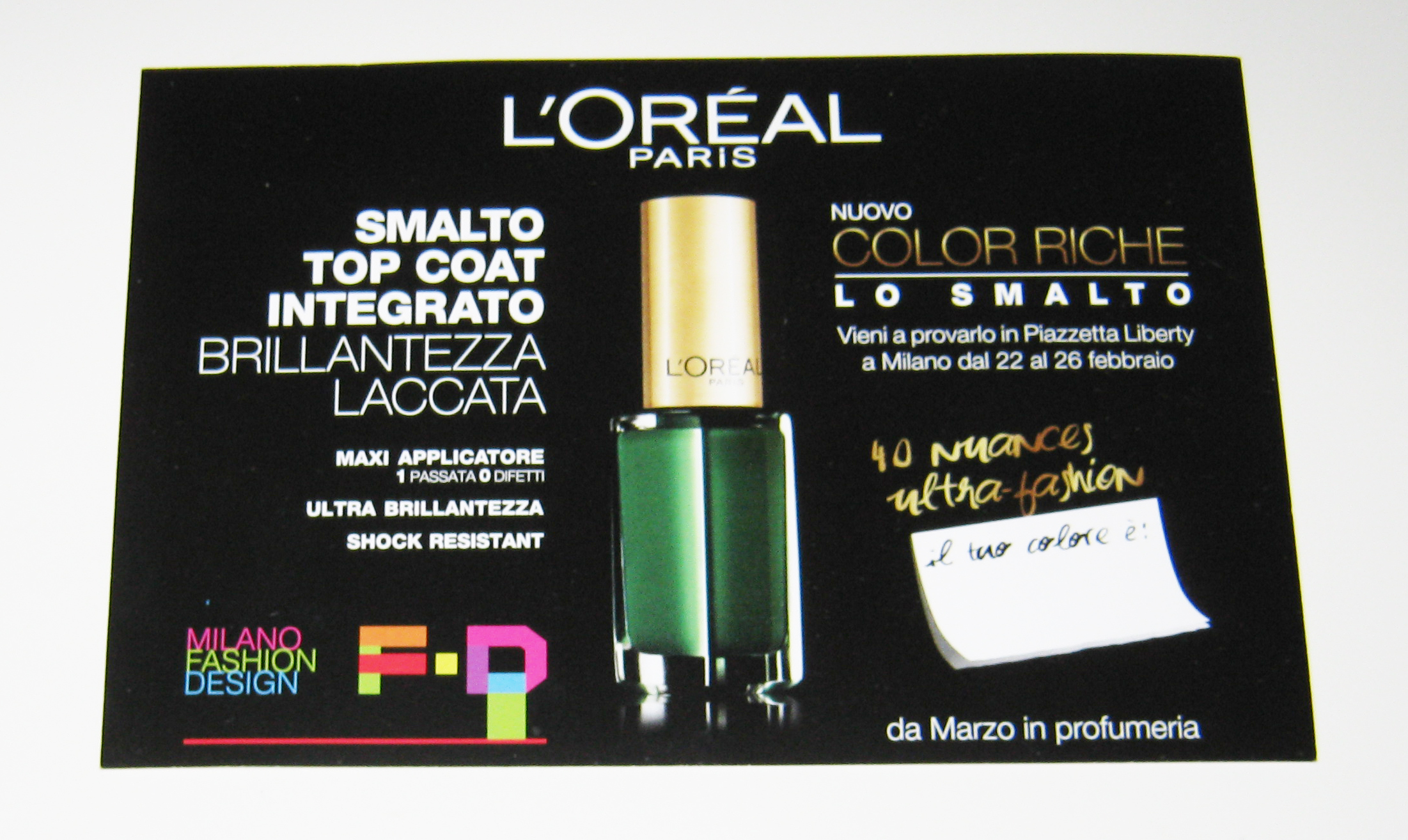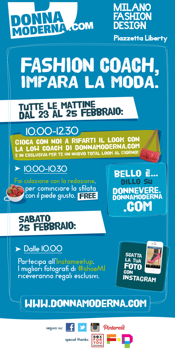 Tra gli eventi da non perdere le colazioni organizzate da Donna Moderna in Piazza Liberty e la possibilità di “rifarsi le unghie” con L’Oréal che offre l’occasione di provare in anteprima una delle 40 nuance dello smalto Color Riche, che garantisce una performance brillante con una sola applicazione.