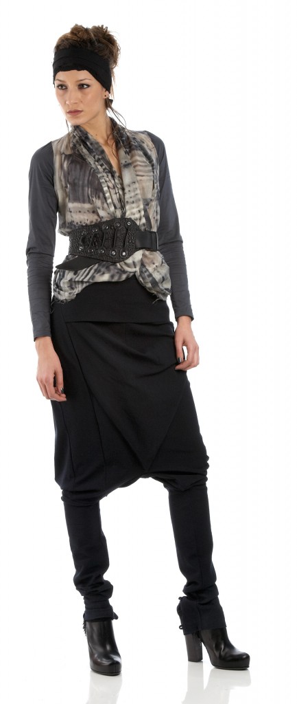 Uno stile destrutturato ed usurato, che però non rinuncia a valorizzare la silhouette, e l’uso di materiali eterogenei quali pizzo, organza, materiale stretch, lana cotta plissé, viscosa, lurex, seta, flanella di lana e lavorazioni uniche celebrano l’incontro tra lusso e polvere.