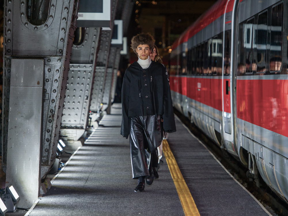 Dal binario 22 della Stazione Centrale di Milano, domenica 17 Gennaio, nessuno è partito, ma in molti erano lì con gli occhi puntati su un Frecciarossa. Pardon, non proprio sul Frecciarossa, ma sui modelli vestiti Damir Doma che vi passavano accanto, in quella che è stata la sfilata con la location più particolare. Un luogo affascinante, quello della stazione, che ha raccontato al meglio la collezione dello stilista tedesco, che nel 2006 ha iniziato a creare collezioni per il gruppo Paper Rain (presentata per la prima volta durante la Settimana della Moda di Parigi nel 2007), aprendo poi nel 2009 la sua boutique segreta. Di luoghi misteriosi e talenti sconosciuti, però, non si parla, visto che i suoi capi sono indossati da celebrities come Jared Leto, Bruce Springsteen, Kirsten Dunst e Lenny Kravitz.