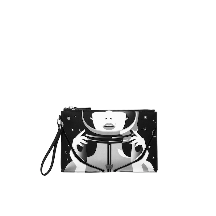 I modelli della nuova collezione A/I 2017 sono disponibili nei colori Black, Night Blue, Beaugiolais, Moon, Shine e nell’inedito Ologram, studiato per creare un gioco di tonalità uniche. Le nuances dai colori caldi e romantici si fondono con materiali pregiati come la Plain Leather, la Grain Leather, Cocco print Leather e Laser, una pelle nera laserata con effetto luminoso grazie all’utilizzo di un tessuto catarifrangente. Fanno parte della collezione anche stampe trendy quali Amburgo, che rimanda ad un cielo stellato e il pezzo più caratteristico della collezione: Astronaut che ritrae una donna, appena sbarcata sulla luna che si leva elegantemente il casco della divisa spaziale.