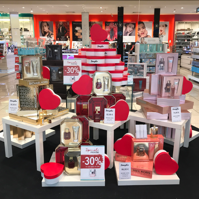 Ho visitato la profumeria Douglas perché, si sà, un buon profumo è indispensabile per creare la giusta atmosfera romantica. E proprio da Douglas ho fatto i miei primi acquisti: una candela profumatissima allo zucchero filato e un doccia schiuma abbinato della linea Les Delices di Douglas. Peccato che attraverso lo schermo non si possa sentire il profumo ma fidatevi, è quello che ci vuole per San Vantino!